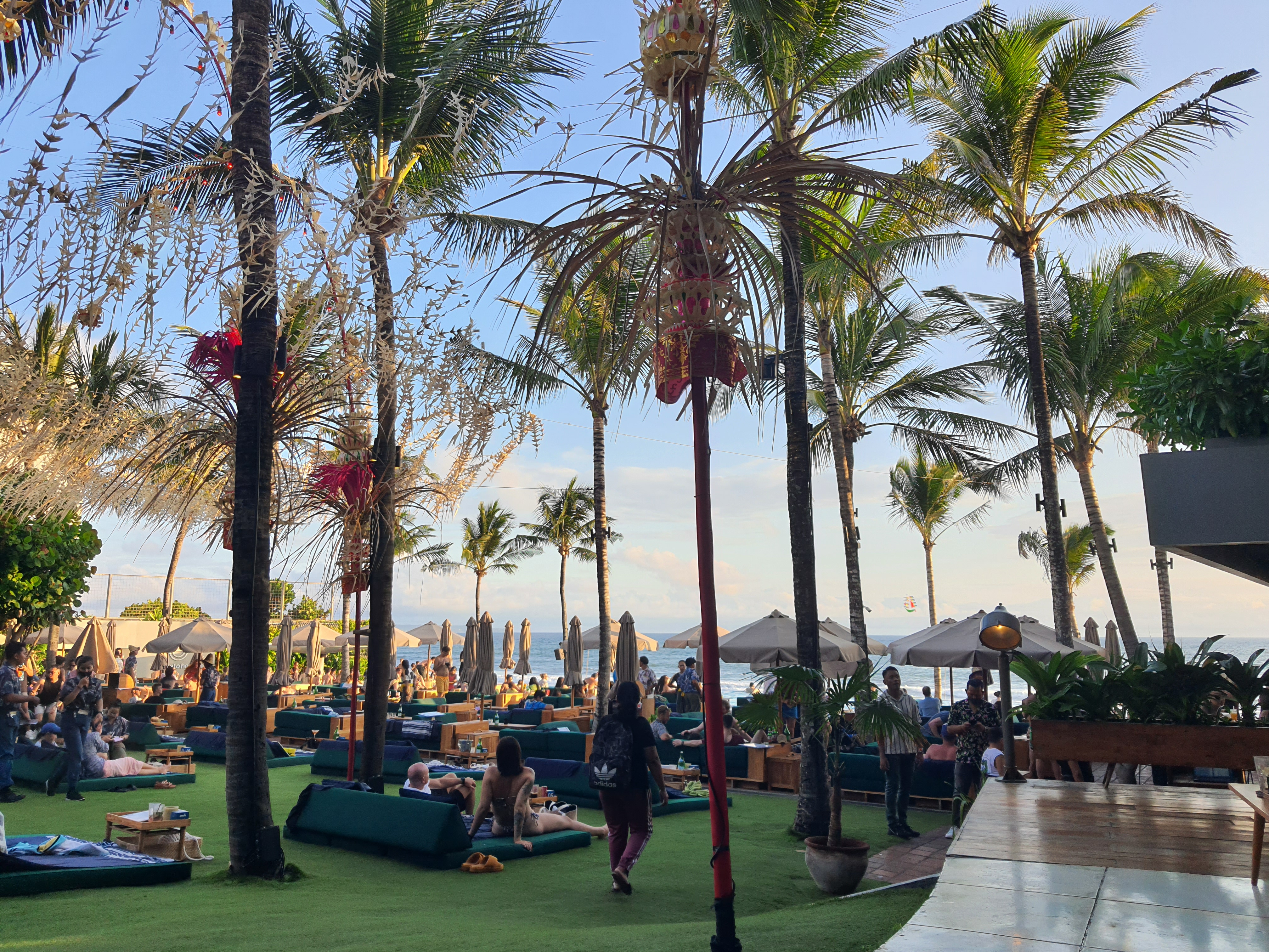 워낙에 인기가 많은 곳이라 베드나 바다 바로 앞 테이블을 원한다면 미리 예약을 하고 방문하는 것이 좋습니다. 위치에 따라 미니멈으로 페이를 해야 하는 금액이 다른데 만약 시간 여유가 많다면 하루 정도 머물며 즐기는 것을 추천드리고 싶습니다. 저희의 경우 예약 없이 해지기 30분 전 도착 방문했고 입구에서 약 15분 대기 후 입장할 수 있었습니다. (따로 입장료는 없습니다.) 좋은 자리는 아니었지만 2층 테이블에 앉아 음료를 즐기고 둘러보며 멋진 석양까지!! 몽환적인 분위기와 음악에 매료되어 다음 발리 방문하면 꼭 하루 종일 이곳을 누리며 수영하고 놀아야겠다 생각했습니다.