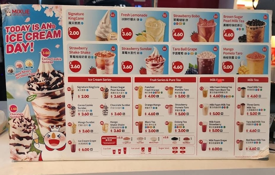 브리즈번 시티를 구경하다가 저렴하고 맛있는 아이스크림을 먹고 싶다면, MIXUE ICE CREAM & TEA를 방문해 보시고 맛보세요. 일단 가격이 매력적이고 또 메뉴도 다양하니 식사 후 디저트나 이동 중 가볍게 즐기기 좋은 것 같습니다.