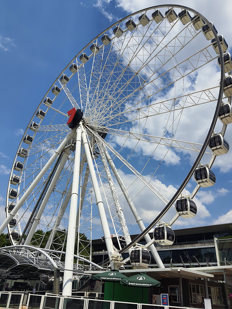 가장 먼저 눈에 들어오는 것은 휠 오브 브리즈번 The Wheel of Brisbane 대관람차인데요, 사우스뱅크의 인공해변과 더불어 이곳의 랜드마크이기도 해요. 브리즈번 대관람차는 61m 높이까지 올라가며 탁 트인 브리즈번의 낮과 밤 풍경을 볼 수 있어요. 특히 해 질 녘 탑승해서 선셋을 보며 관람하는 것도 매력적이라고 합니다.