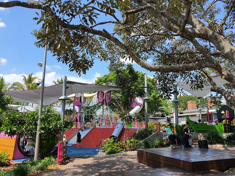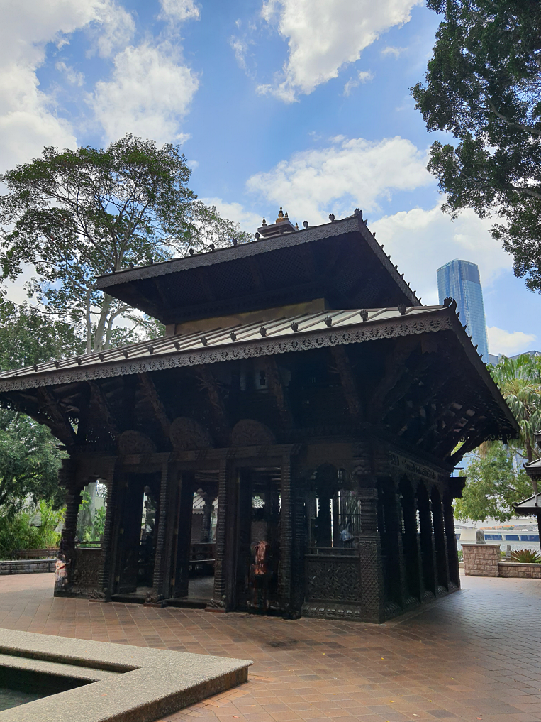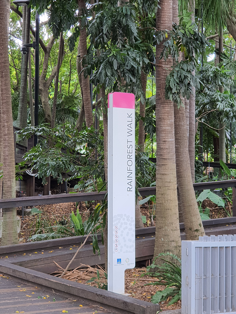 대 관람차를 지나고 나면 네팔 평화의 탑 Nepalese Peace Pagoda 을 만날 수 있는데요. 아시아에서나 볼 수 있는 분위기의 탑이 브리즈번에 왜 있을까? 처음엔 의아했는데 네팔 평화 탑 파고다는 1988 년 브리즈번 세계 엑스포의 일환으로 지어졌으며, 네팔의 복잡한 목재 가공의 오랜 역사를 선보였다고 해요. 그리고 엑스포 88이 끝날 무렵, 탑은 일본으로 판매되고 배송될 계획이었지만 브리즈번 대중의 요청으로 판매되지 않고 브리즈번에 남게 되어 이렇게 사우스뱅크를 방문하는 사람들에게 또 다른 볼거리를 제공하고 있는 거죠. 24시간 개방되어 있으며 뒤쪽으로는 레인포레스트 워크 Rainforest Walk로 이어져 있어 공원 내 작은 열대우림을 산책해 볼 수도 있습니다. (저의 경우 갈 때는 강변 길을 따라 구경하고 나올 때 레인포레스트 길로 나와 이쪽저쪽을 다 즐겼어요)