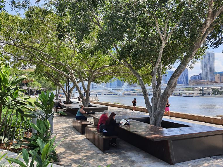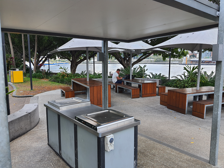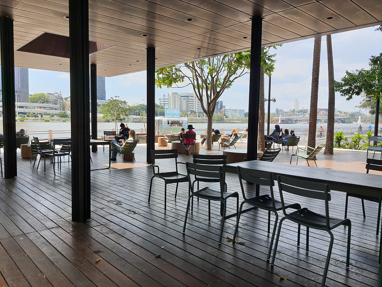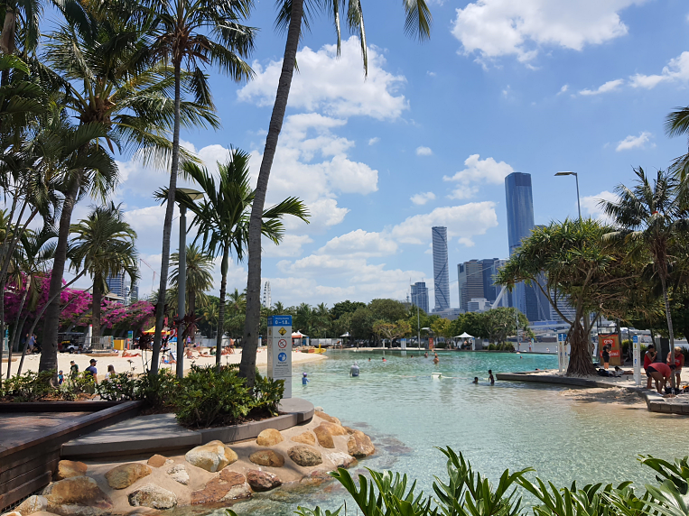 사우스뱅크의 좋은 점은 여기저기 쉬면서 즐길 수 있는 곳이 많다는 거예요. 인공해변 뒤쪽으로는 식당들과 바, 기념품 가게들이 있어 식사를 하며 즐기기도 좋았고 수영을 할 때 짐을 맡길 수 있는 락커가 있어 편하게 수영하고 놀 수 있었어요. 또 샤워 시설도 잘 갖추고 있었습니다. 강변 앞으로 앉아 쉴수 있는 곳이 여기저기 있었는데 무료 바비큐 시설도 갖추고 있어 피크닉 하기에도 좋을 것 같고 예쁜 꽃길을 따라 산책을 하거나 강변 앞에 앉아 책을 읽고 있는 모습, 조깅을 하고 있는 모습 모두 평화로운 브리즈번의 모습을 보여주는 것 같아요.